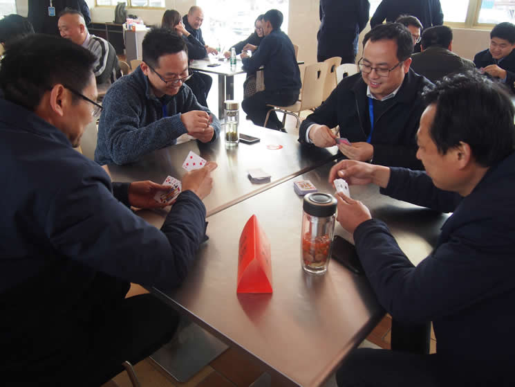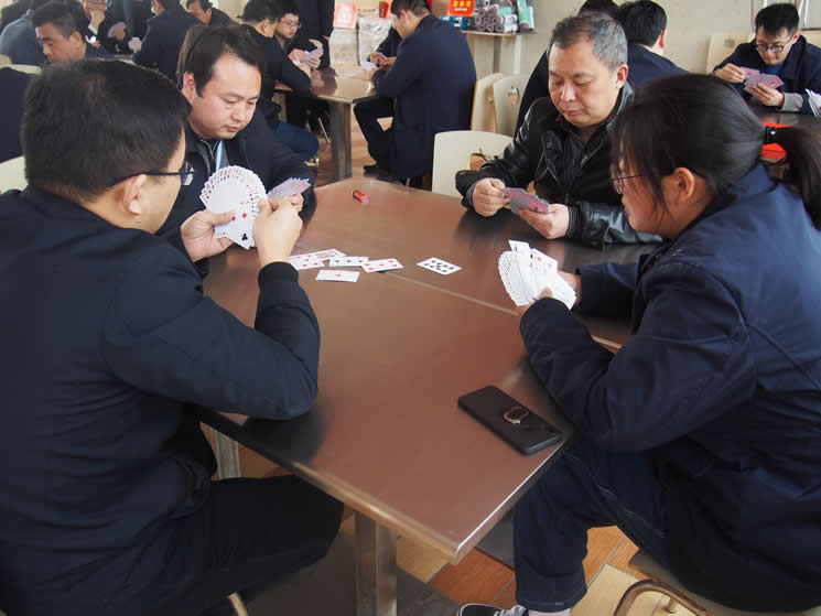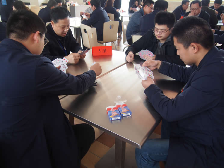 3月23日总经办后勤人员提前做好了现场布置工作,准备好奖品桌椅等,各部门参赛人员在下午纷纷到达活动现场,进行了抽签分组等赛前准备。公司总经理、副总、生技部经理、行政部门经理等作为本次掼蛋比赛的裁判员,就竞赛的要求和注意事项进行了动员。总经理办公室经理周志丹主持了此次掼蛋比赛:在春暖花开的时节,金泰公司迎来了第一季度文体活动,希望大家本着“友谊第一、比赛第二”的原则,赛出风格,赛出水平,预祝各部门选手取得好成绩。随着一声开始,比赛在紧张而欢乐气氛中拉开序幕。